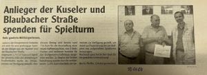 Anlieger Spenden für Spielturm