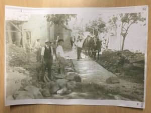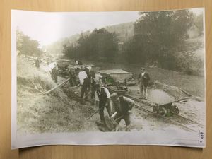 Beschreibung: Die durch den Ort laufende Kuseler Straße ist Teil der Kreisstraße 22. Unter der Belegnummer 644 sind 3 Kopien von alten Fotos abgelegt, wovon 2 Stück zweifellos den Bau der Kreisstraße in Richtung Mayweilerhof zeigen. Die Baustelle befand sich zu diesem Zeitpunkt etwa auf Höhe von Sandersch Hiwwel, also ungefähr unterhalb des heutigen Hotel-Restaurantes Reweschnier. Ausweislich Belegstück 802 Orts- und Hofgeschichte von Friedel Morgenstern, Blaubach ist der Bau der Straße in diesem Teilbereich 1934 erfolgt. Näheres dazu, insbesondere wann der Abschnitt nach Kusel, die "Neue Straße" gebaut wurde, muss noch geklärt werden.