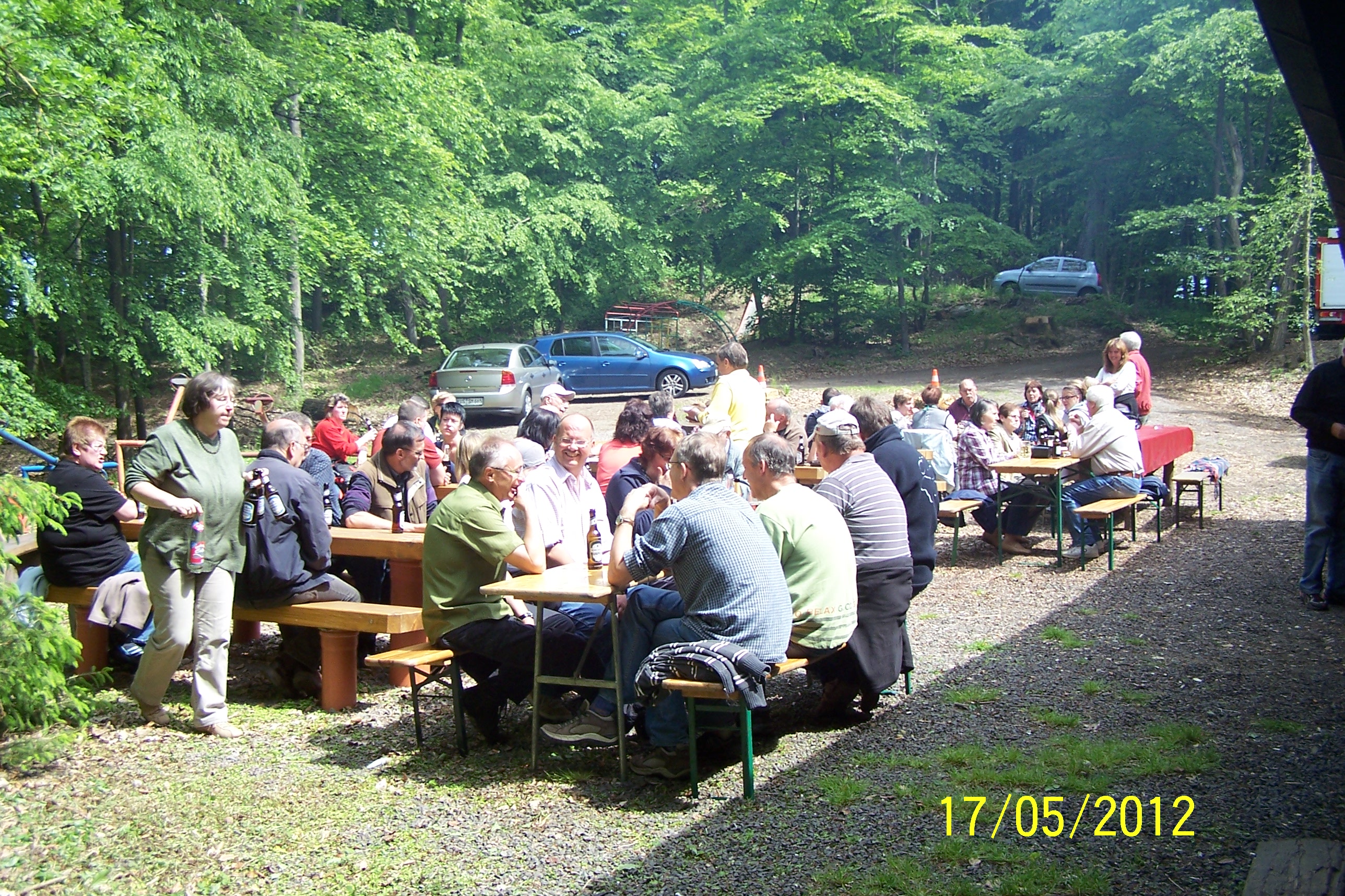 Aufnahme von der Blaubacher Gemarkungswanderung 2012. Hier an der Blaubacher Blockhütte. Foto von Walter Reiß