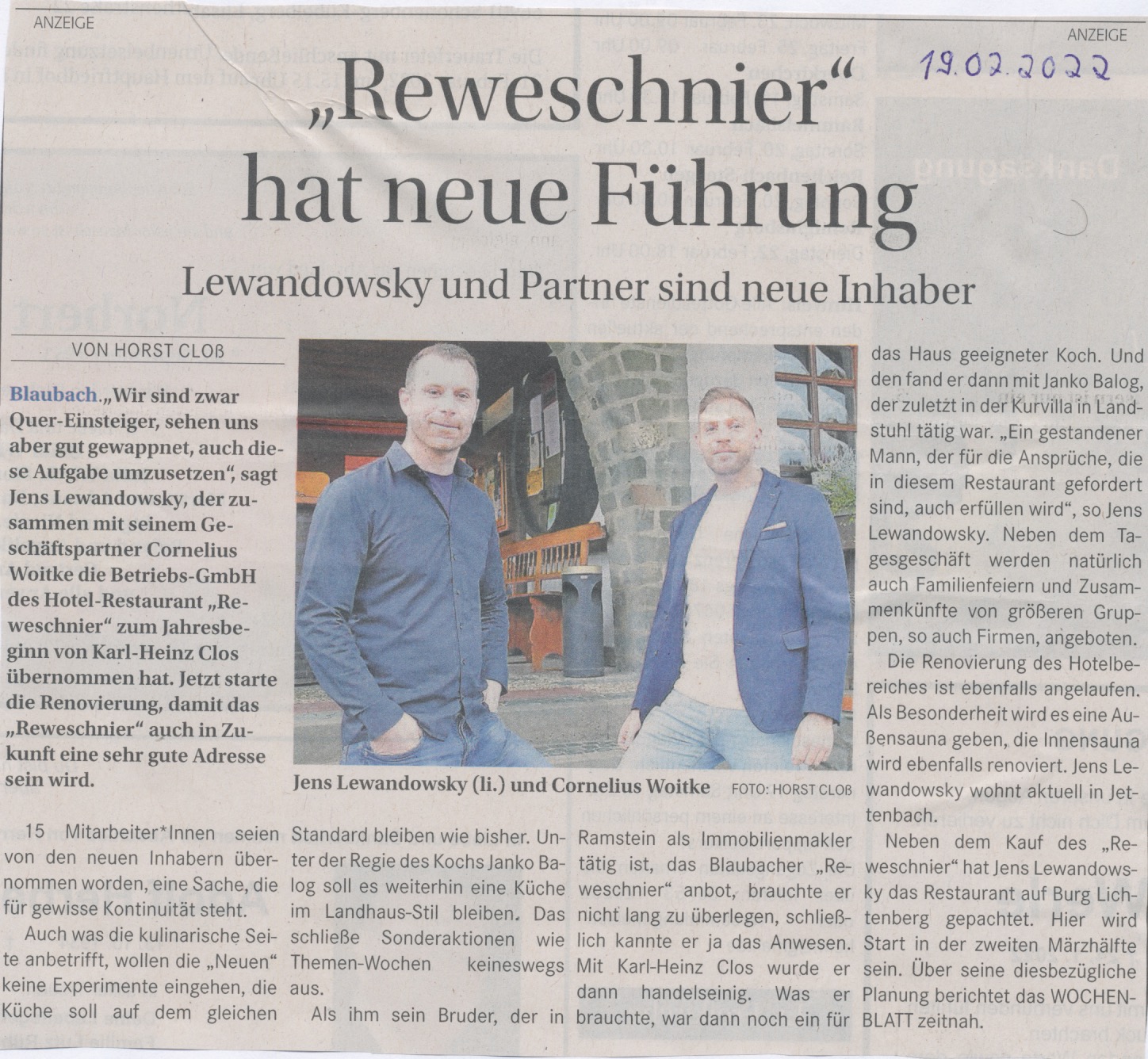 Reweschnier unter neuer Führung von Jens Lewandowsky und Cornelius Woitke. (Abdruck des Artikels erfolgt mit Zustimmung von Horst Cloß)