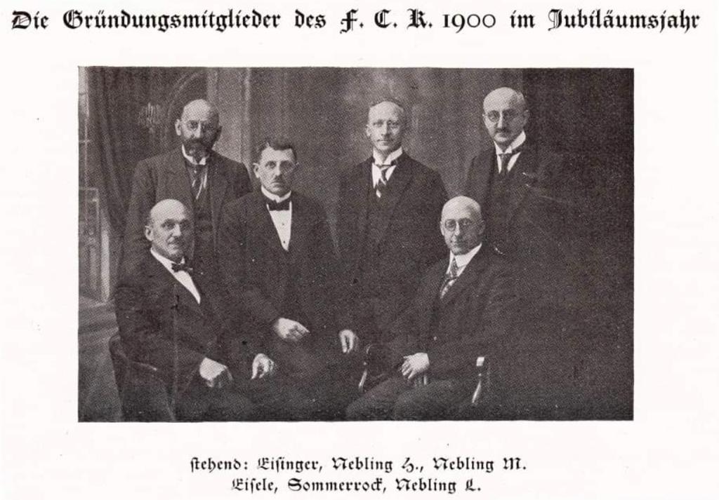 Georg Eisinger, hinten links, mit den übrigen Gründungsmitgliedern beim Vereinsjubiläum des FCK.