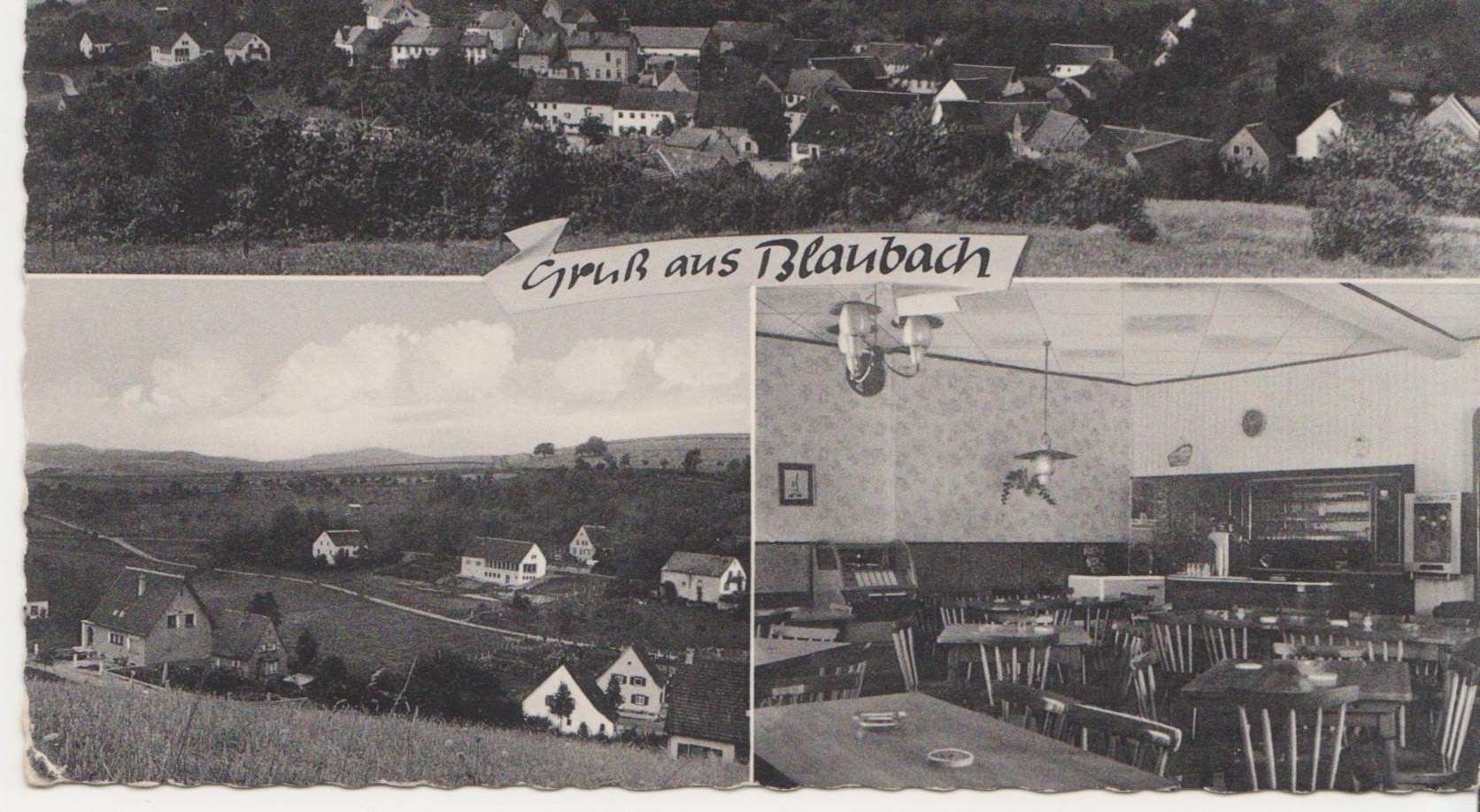Datei:Postkarte Gruss aus Blaubach Nr110 Zum Dicken Daumen und Ortslage.JPG