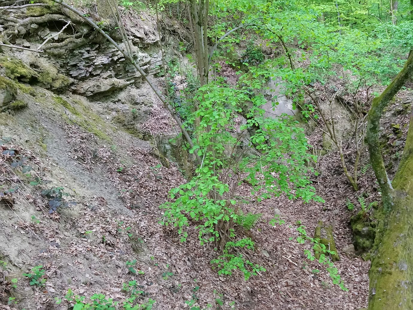 Früherer Gesteinsabbau im Gemarkungsteil Hoppler, Aufnahme aus 2022, viele Jahrzehnte nach Beendigung der Grabetätigkeit.