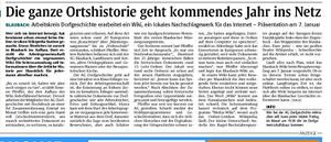 Beschreibung: Der Ende 2010 in der Westricher Rundschau erschienene Artikel "Die ganze Ortshistorie geht kommendes Jahr ins Netz" berichtet von den Anfängen der Blaubacher Arbeitsgruppe Dorfgeschichte.