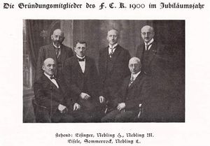 Georg Eisinger, hinten links, mit den übrigen Gründungsmitgliedern beim Vereinsjubiläum des FCK.
