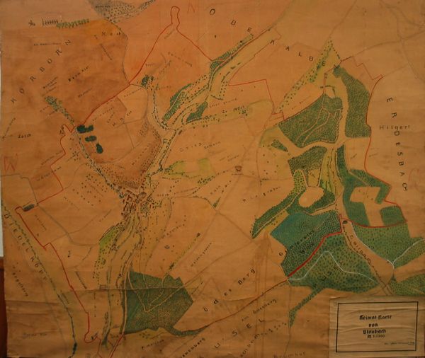 Handgezeichnete Karte von Blaubach, gefertigt von den beiden Lehrern Sofski und Kleinschmidt für Unterrichtszwecke