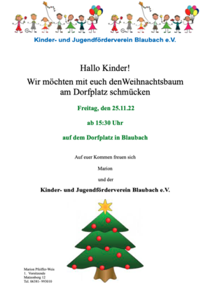 Beispielhaftes Plakat: Aufruf des Kinder- und Jugendfördervereins zum gemeinsamen Schmücken des Weihnachtsbaumes