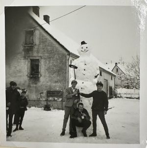 Das hier abgedruckte Foto mit dem prächtigen gut 3,50 hohen Schneemann stammt aus dem privaten Fotoalbum von Klaus Dillmann. Die Aufnahme ist etwa um 1970 entstanden. Wer weiß noch wer die beiden jungen Leute am linken Bildrand sind? Bitte melden! Direkt am Schneemann stehen von links nach rechts Edwin Clos, Klaus Dillmann und Fritz Morgenstern.