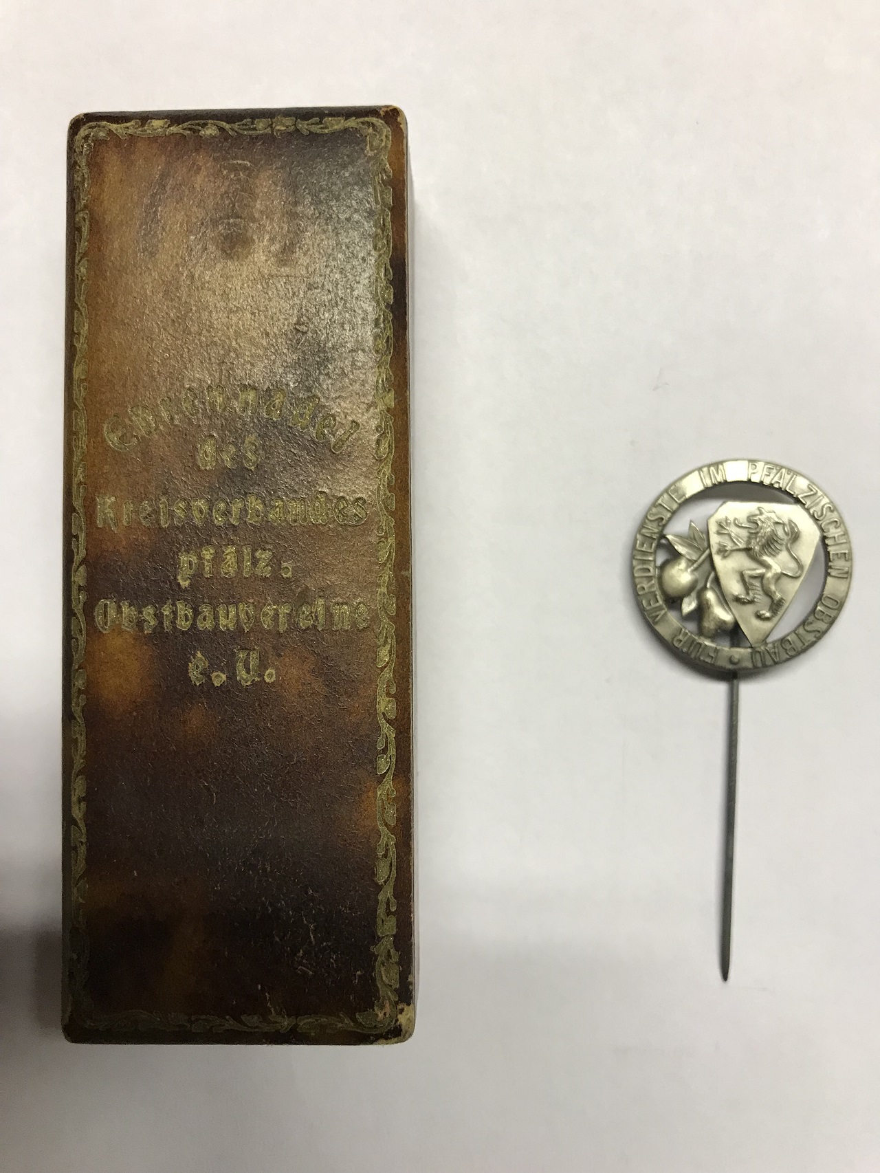 | 20:31, 2. Dez. 2017 | Ehrennadel pfälzischer Obstbauvereine.jpg (Datei) | 530 KB | Kleinere Auflösung | 2 | |