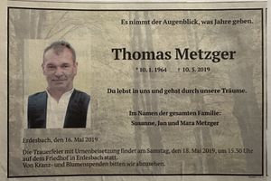 Todesanzeige, Nachruf und Danksagung Thomas Metzger