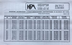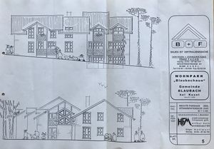 Beschreibung: Bei diesem Belegstück handelt es sich um die schwarz-weiß-Kopie eines Exposés mit dem die Firmen B + F bzw. HFM Projektentwicklungsmanagement GmbH aus Kusel die damals zur Neuerrichtung anstehenden Häuser Gartenstraße 15 und 17 beworben haben.