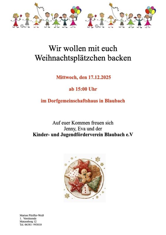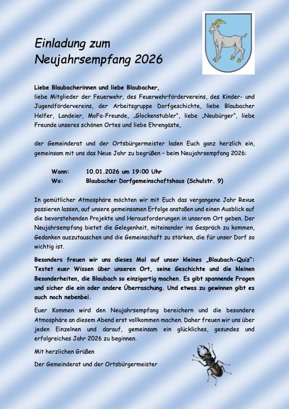 das Jahr neigt sich dem Ende zu und die Weihnachtszeit lädt dazu ein, innezuhalten, zurückzublicken und Dank zu sagen. Der Ortsgemeinderat Blaubach bedankt sich herzlich bei allen Bürgerinnen und Bürgern für das entgegengebrachte Vertrauen, das Engagement und das gute Miteinander im vergangenen Jahr.