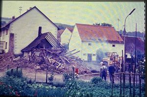 Die der Archiv von Susanne Allmann zur Verfügung gestellten Aufnahmen zeigen der Abriss des Wohnhauses und der Scheune von "Paulins". Das genaue Datum des Abrisses fehlt uns noch. Wahrscheinlich kurz nach 1974.